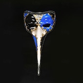 : A unique bird-themed design features bold red, blue, and black color options, each accented with luxurious gold detailing and intricate swirl patterns. The beak-like extension lends a dramatic and theatrical flair, while musical note embellishments add a sophisticated artistic touch.