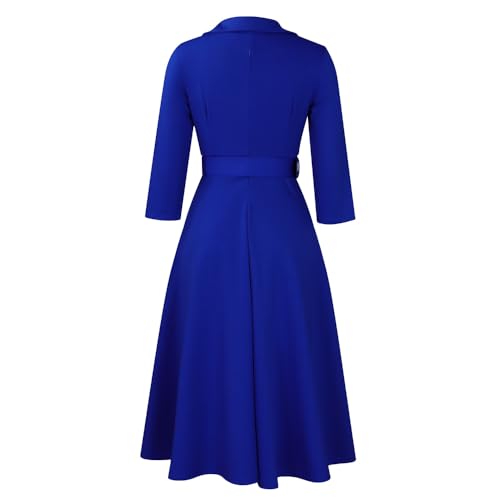Useagrey Formal Dress for Curvy Women, Elegant Business Deep V Neck Dress with Belt, Long Sleeve Suit Skirt