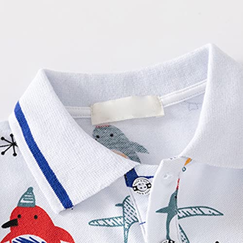Boys Kids Pique Polo Shirt Short Sleeve Penguin Graphic Tee Button Up Lapel Collar Toddler Summer Golf Tennis Tops 6