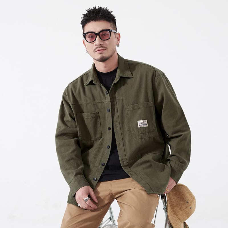 Japanese-Style Workwear Long-Sleeve Shirt Jacket for Men, Spring Autumn Casual Loose Shirt Jacket 1