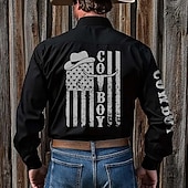 HOT ! Men's American US Flag Letter Printed Shirt Western Shirt Cowboy Shirt Long Sleeve Vintage Retro Outdoor Vacation Spring Fall Turndown 3D Print Linen Like Shirt Black