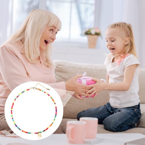 Initial Beaded Necklace, Colorful Cute Beaded Necklace with Heart Shells Stylish Letter Pendant Necklace Handmade Personalized A-Z Gifts for Women Girls (Letter N) 7