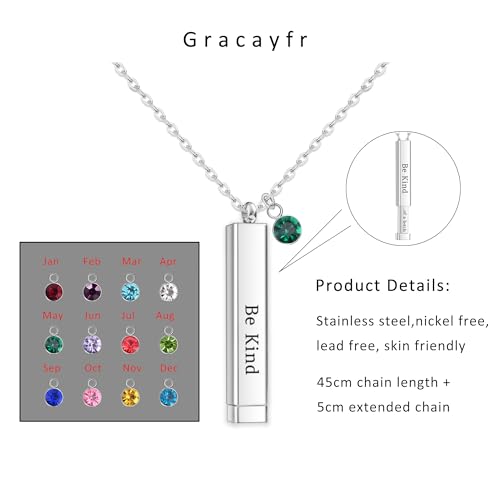 Be Kind Of A B Necklace For Women, Hidden Message Inspirational Necklace, Birthstone Personalized, Square Tube Vertical Bar Pendent Necklace Jewelry Gifts For Sister finest Friend