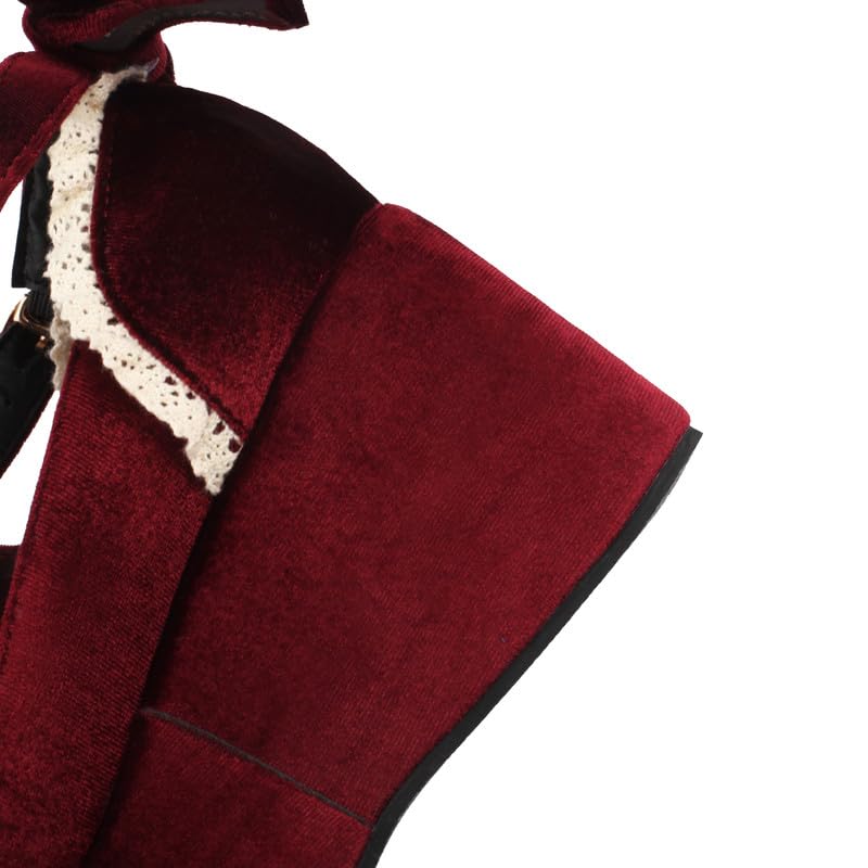 Elbslutt Womens Goth Mary Jane Shoes Platform Kawaii Cosplay Girls Lolita Shoes Round Toe Buckle Strap Chunky Wedge Heel Bow Lace Y2k Ankle Strap Dress Pumps Shoes Oxfords 4