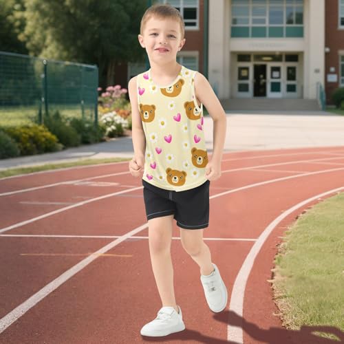J JOYSAY Bear Daisies Hearts Beige Boys Tank Top Sleeveless Muscle Shirts Quick Dry Kids T-Shirts 3-15T 5