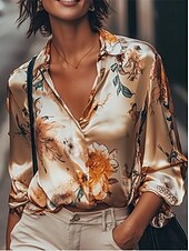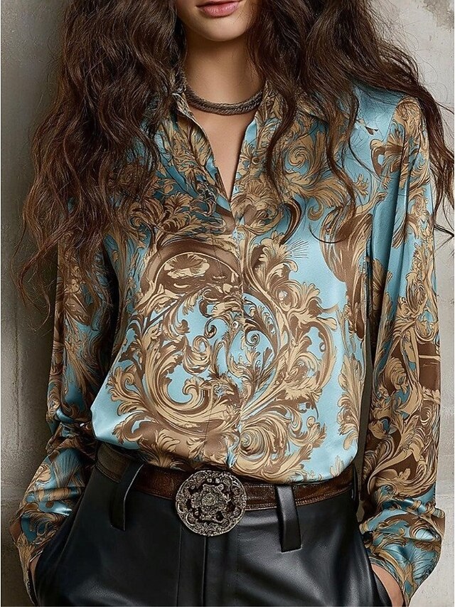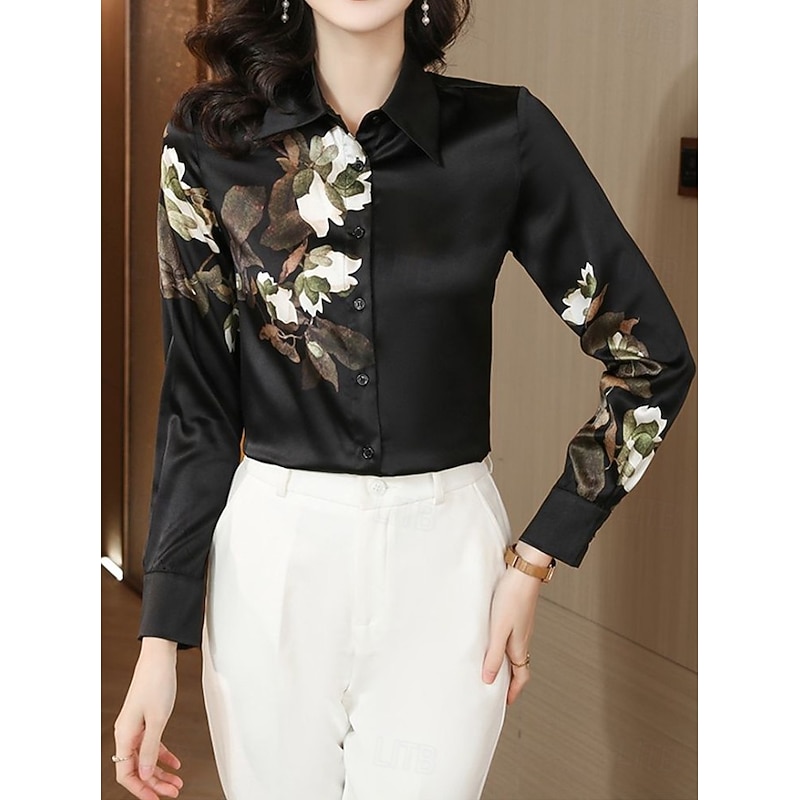 This Women's Work Shirt Floral Elegant sophisticated Casual Long Sleeve Shirt Collar Regular Tops Work Party Evening Wear Date Night Outfits Black White Pink Blue Fuchsia Spring, Fall, Winter, Summer combines elegant design with practical functionality. Every detail has been carefully considered to ensure you get the best possible experience. The excellent construction means this product will serve you well for years to come.