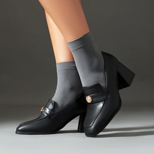 • 💕 Heel Height: Block heel loafers for women leather 2.8in/7cm are suitable for women of any age; Square toe pumps shoes are adorable and elegant, and can be the perfect style to elevate any look