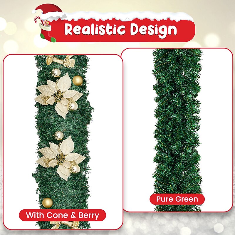 Why Choose 8.8 ft./2.7m Artificial Christmas Garland Staircase Decoration Green Rattan with Flower Decorations for Home Stairs Fireplace Front Porch Door Display Indoor Outdoor Christmas Decor?