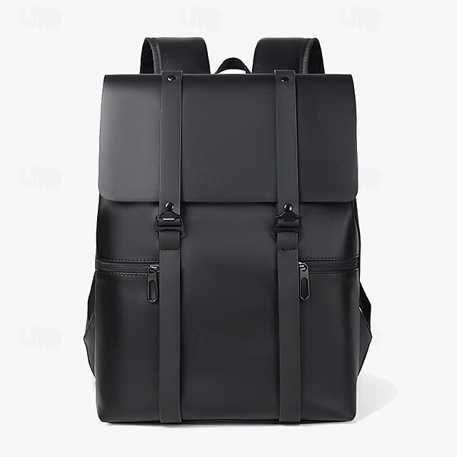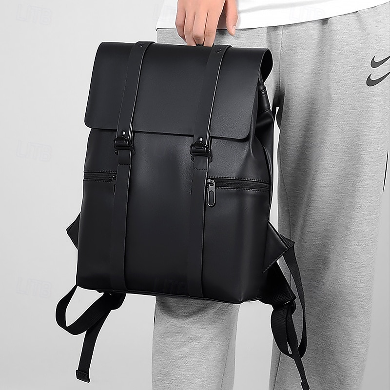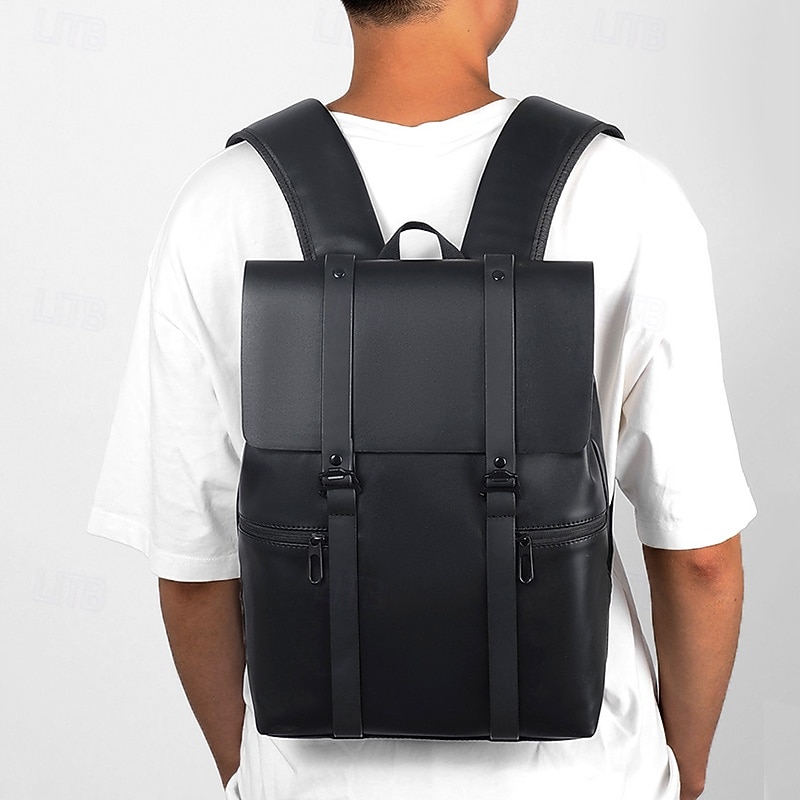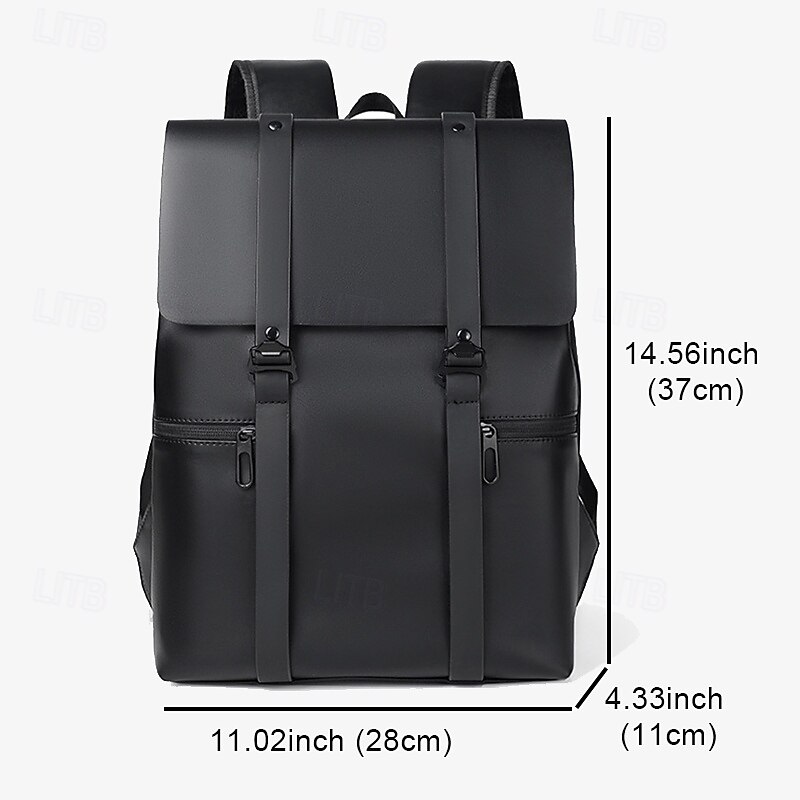 More information about Men's Black Minimalist Faux Leather Backpack with Flap Cover – Sleek Waterproof Laptop Bag for Work, College, or Daily Commute