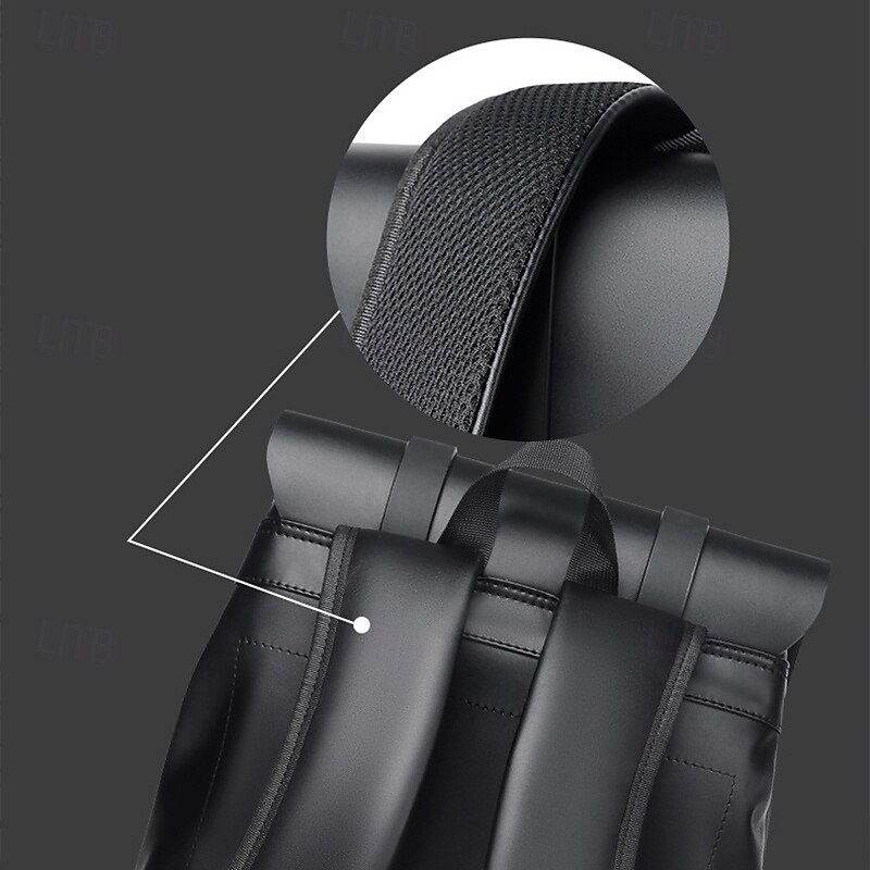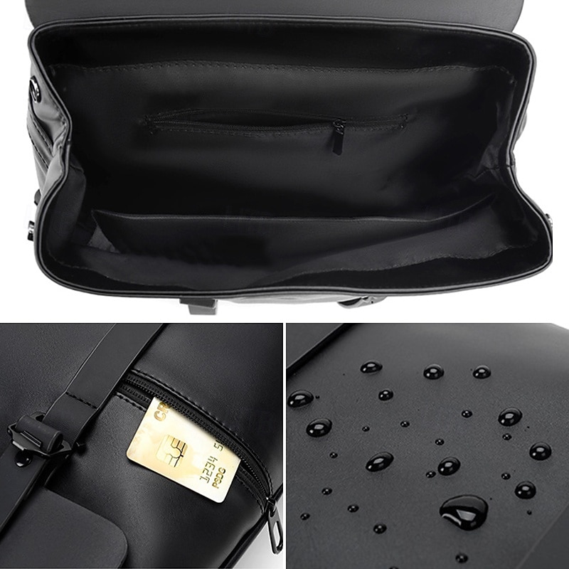 Men's Black Minimalist Faux Leather Backpack with Flap Cover – Sleek Waterproof Laptop Bag for Work, College, or Daily Commute 10
