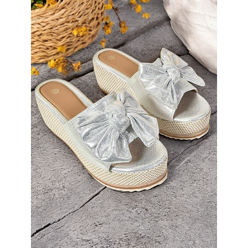 Gold Metallic Bow Wedge Sandals for Women - Glamorous Platform Slip-Ons for Casual Summer Outings 3