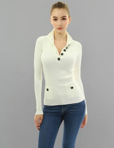 HOT ! AmélieBoutik Women Button Up V Neck Ribbed Pullover Sweater with Pocket