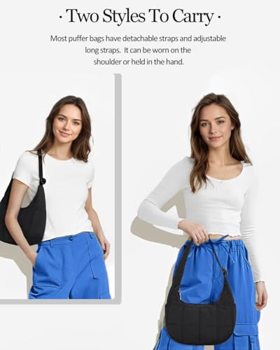 • Spacious Capacity & Organization: This puffer purse offers ample space for your daily necessities - from smartphones, wallets to small books and umbrellas, etc. A practical new crescent-shaped shoulder bag, which includes a main compartment and multiple pockets, makes it effortless for you to sort and access your items, keeping your valuables tidy and within easy reach.