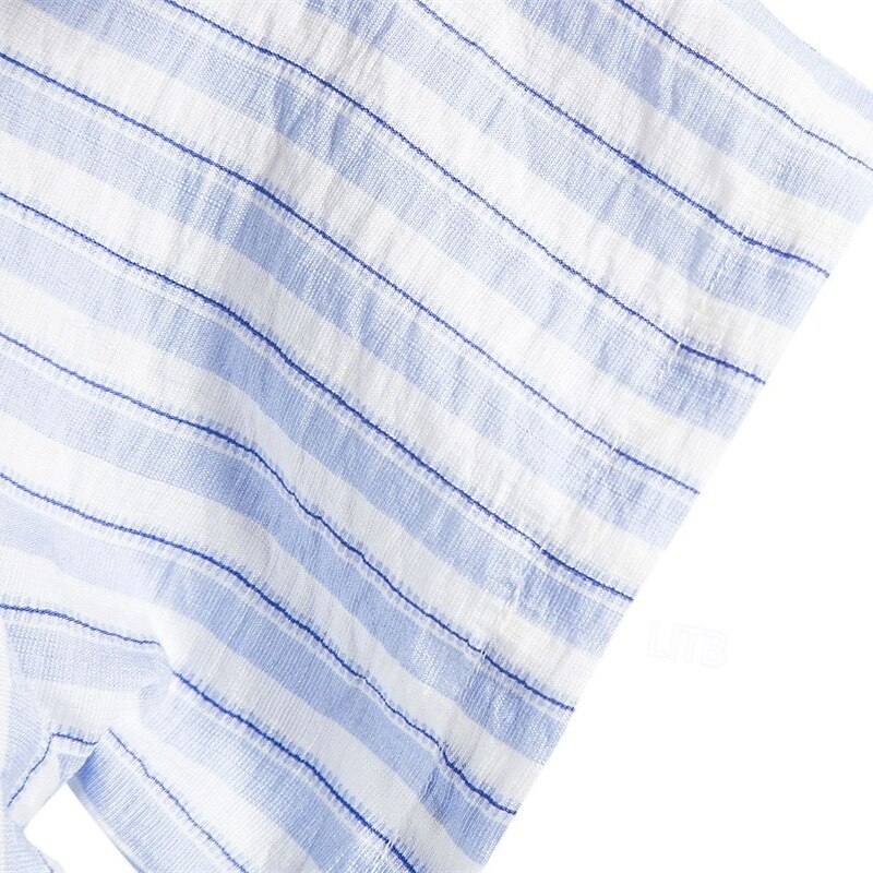 Men's Shirt Summer Shirt Casual Shirt Beach Shirt Button Up Shirt Light Blue Short Sleeve Stripe Grandad Collar Lapel Vacation Hawaiian Clothing Apparel Fashion Casual Comfortable 5