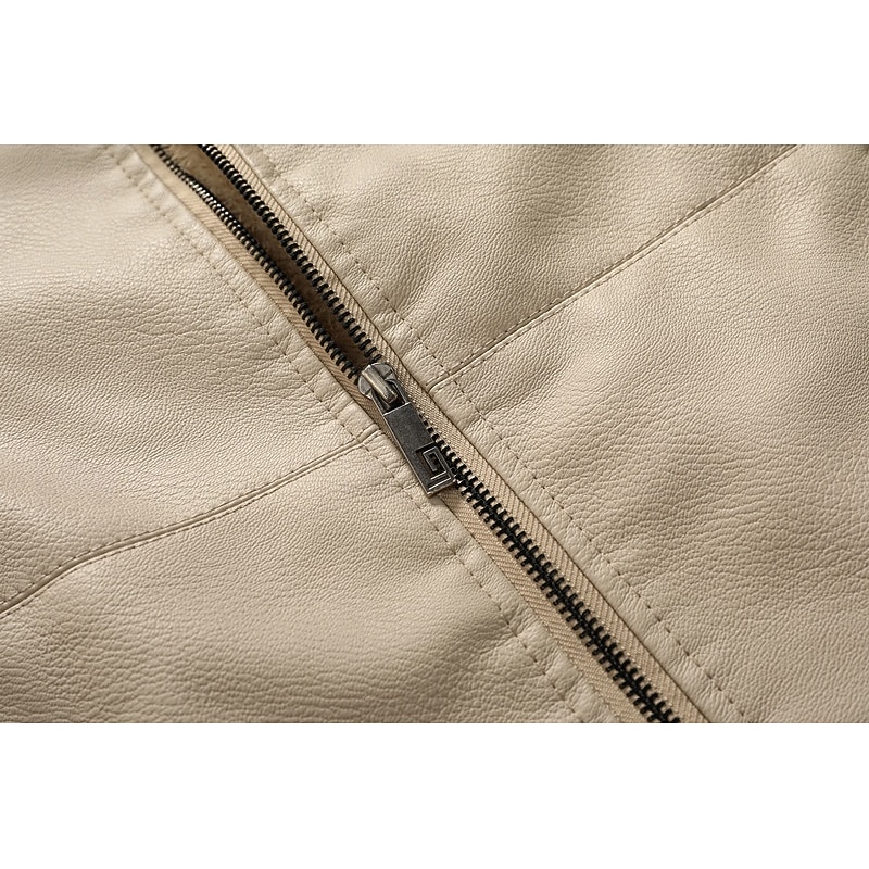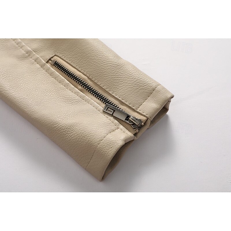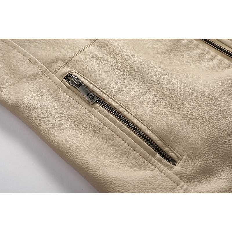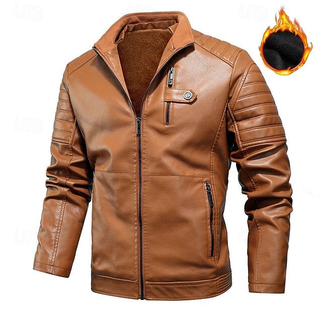 More information about Men's Faux Leather Jacket Formal Home Full Zip Winter Spring & Fall Solid Color Vintage Fashion Shirt Collar Regular Black White Burgundy Brown Jacket