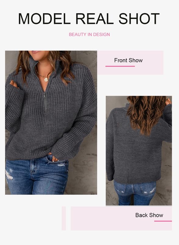 • FEATURES - Zipper sweater for women / fashion sweatshirt sweaters with quarter zip / pullover sweater tops / collared V neckline with zip / long sleeves waffle knit / smooth practical zipper / chunky thick / comfy stretchy knit fabric / ultra soft feeling / plain Color / ribbed neckline and hem detail / oversized loose fit / casual, vintage and cute Style / for spring, fall, winter / Size : S, M, L, XL, XX-L