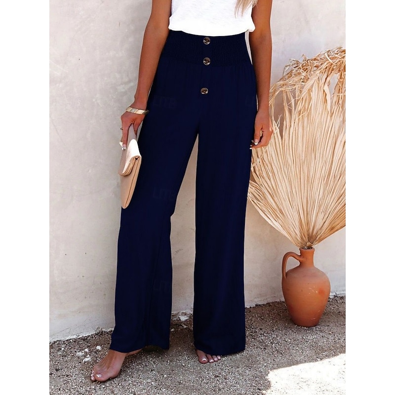 More information about Women's Wide Leg Chinos Fashion Streetwear Full Length High Waist Plain Elastic Waistband Comfy Soft Comfortable Micro-elastic Outdoor Street Black White Navy Blue Spring & Fall Regular Fit
