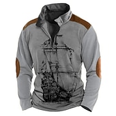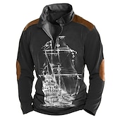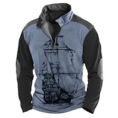 More information about Men's Sailboat Zip Polo Long Sleeve Polo Shirts Turndown Zip Vintage Outdoor Casual Daily Streetwear 3D Print Fall & Winter Black Blue Brown