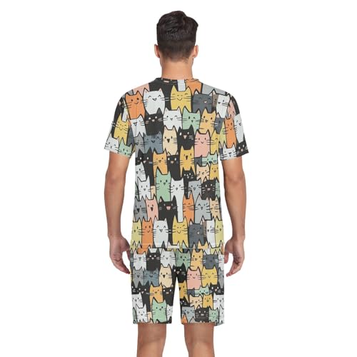 Funny Cat Men’s Pajama Sets Short Sleeve Shirt and Pants with Soft Touch Fabric 6