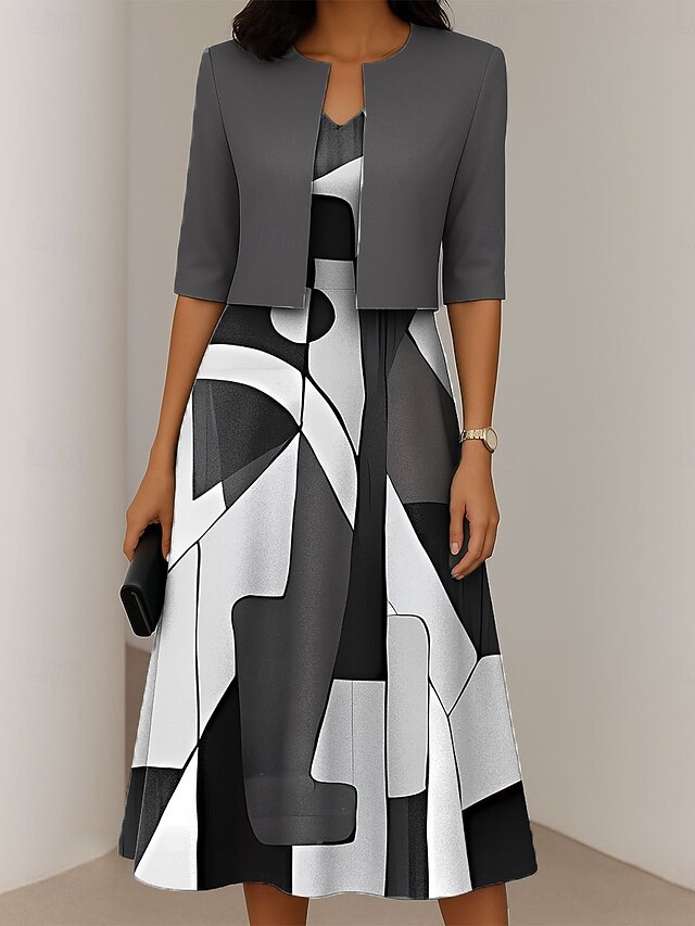 Women's Dress Set A Line Dress Summer Dress Casual Semi Formal Ombre Graphic Print Midi Dress Half Sleeve V Neck Vacation Date Pink Green Gray Spring Fall Regular Fit 3