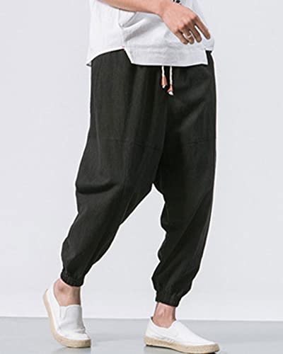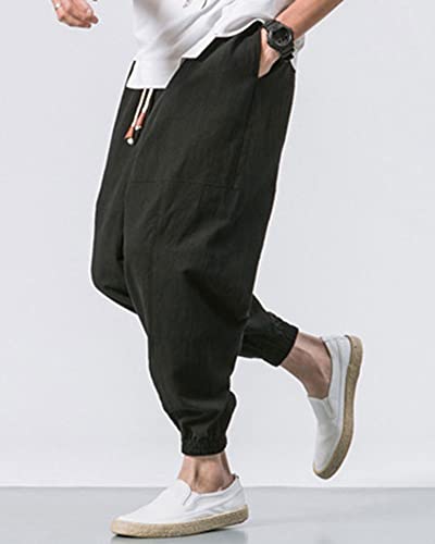 LifeHe Men's Hip Hop Harem Pants Joggers Linen Drawstring Elastic Waist Baggy Drop Crotch Sweatpants Trousers 7