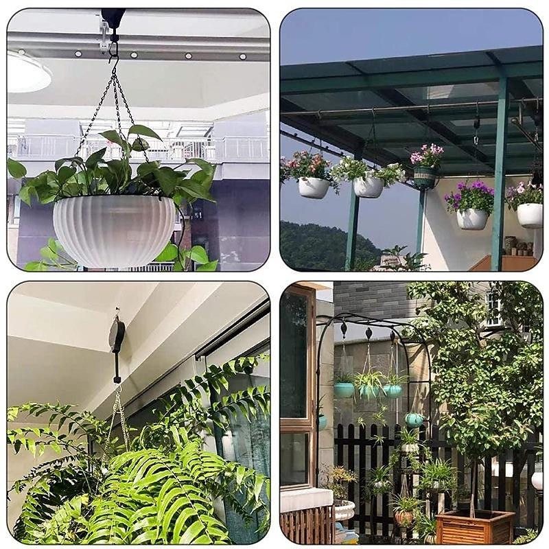 Plant Hook Pulley, Retractable Plant Hanger Flower Basket Pots and Birds Feeder Hang High up and Pull Down to Water Or Feed 6