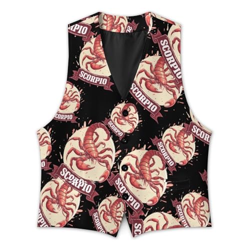 HOT ! Zodiac Sign Scorpio Men's Suit Vest Waistcoat Vests Formal Dress with 2 Pockets for Business Casual Tuxedo