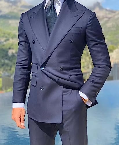 More information about HZUOU Double Breasted Men's Suit Wide Peak Lapel Wedding Grooms Tuxedos 2 Pieces Business Men Suits HZH25