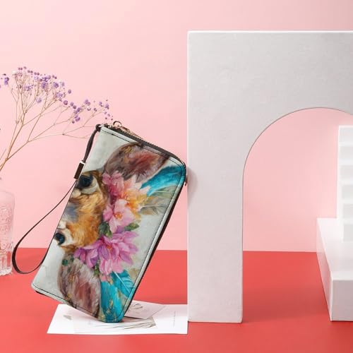 More information about Deer with Boho Florals And Feathers PU Leather Clutch Long Bifold Wallet, Coin Purse Credit Pass Case, Durable Card-Holder Money Storage for Women Men