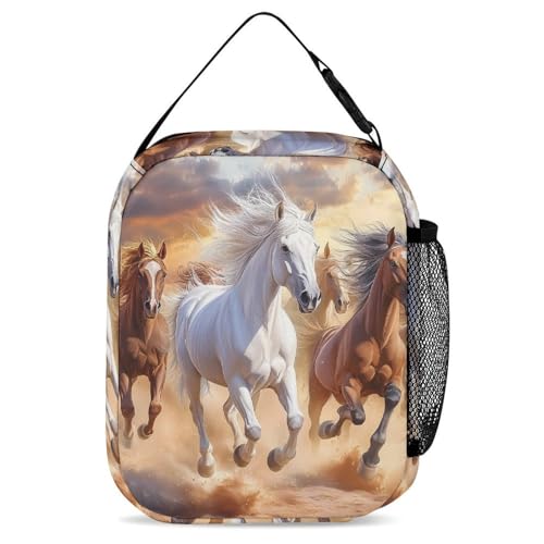 Horses Running 3 PCS Backpack Set Casual Daypack with Insulated Lunch Bag & Pencil Case 4
