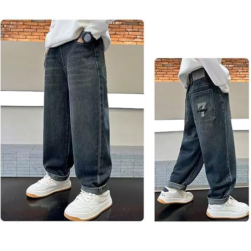Boys Straight Leg Jeans Casual Baggy Denim Pants Y2K Streetwear Elastic Waist Trouser Fall Winter Jeans with Pockets 6