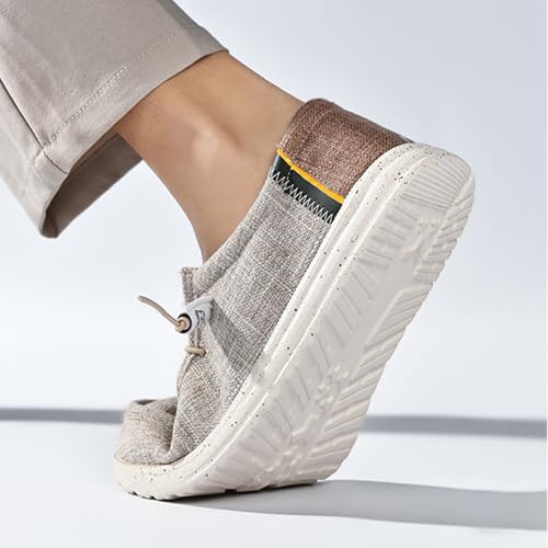 MILDSEVEN Lace Up Men's Simplicity Linen Shoes, Casual Traditional Chinese Canvas Shoes, Fashion Handmade Comfortable Retro Loafers,9.5,A 6