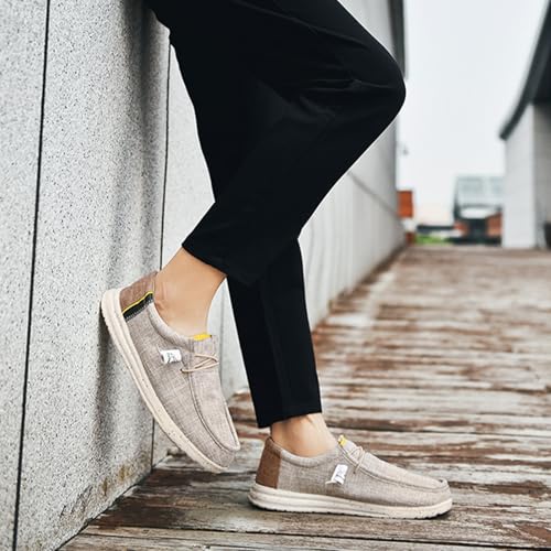 MILDSEVEN Lace Up Men's Simplicity Linen Shoes, Casual Traditional Chinese Canvas Shoes, Fashion Handmade Comfortable Retro Loafers,9.5,A 5