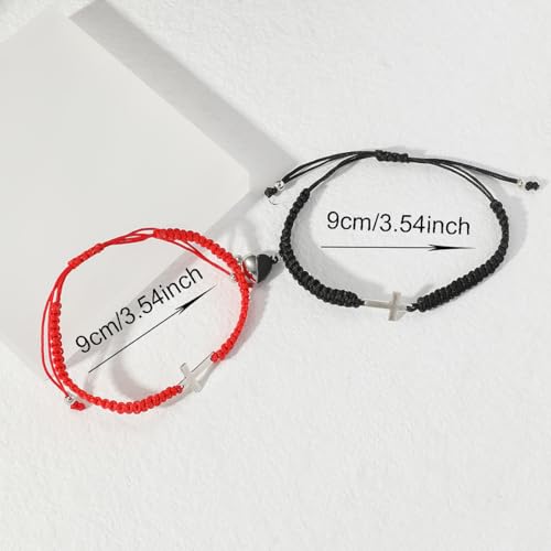 CJIAYUJEW Matching Bracelets for Couples Handmade Braided Love Cross Bracelet Adjustable Heart Matching Attraction Couples Bracelet for Him and Her Bff Friendship Gift 6