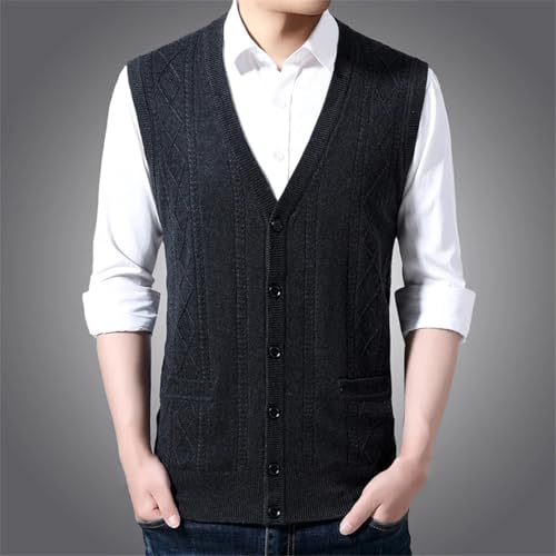 Mens Wool Knitted Vest Cardigan Winter Fall Sleeveless Sweaters V-Neck Single-Breasted Waistcoat 4