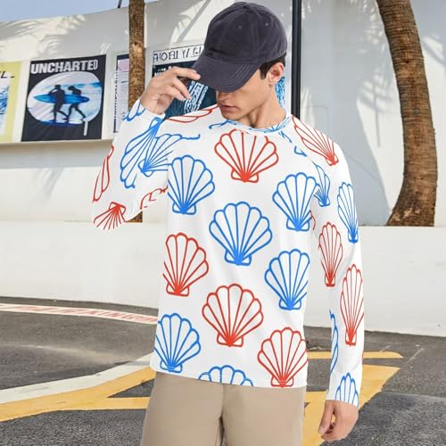 HOT ! Blue Scallop Shell Men's Sun Protection Shirts UPF 50+ Long Sleeve UV Rash Guard Quick Dry Swim Shirts