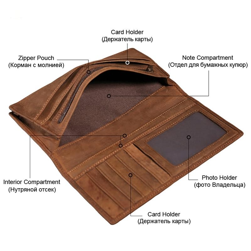 • Material: Crafted from authentic leather, this 7.3in men's long wallet exudes a refined charm. Its supple texture not only enhances grip but also allows for a relaxing experience when carrying your essentials.