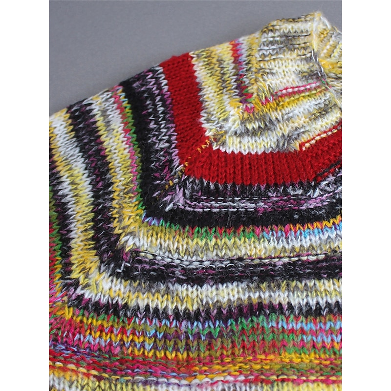 Highlights [Fabric] : Crafted from a high-quality polyester blend, this cardigan offers a soft and cozy feel, perfect for layering during the fall and winter seasons. The material provides a comfortable micro-elastic fit that ensures ease of movement and all-day comfort. [Fit] : Designed in a loose fit, this cardigan features a relaxed silhouette that provides a casual yet stylish look. The open-front design enhances its versatility, allowing it to easily complement various tops and bottoms for a chic, laid-back ensemble. [Design Highlights] : The cardigan showcases a vibrant rainbow pattern with multicolored stripes in hues of red, purple, green, blue, and yellow, adding a lively and eye-catching element to your wardrobe. The ribbed knit style enhances the texture and warmth of the piece, while practical pocket details add functionality and flair. [Occasions] : This versatile piece is perfect for daily use, outdoor activities, and weekend outings during the cooler seasons. Its vibrant design and comfortable fit make it an ideal choice for vintage and casual style enthusiasts looking to add a splash of color to their ensembles. [Size Range] : Available in sizes S, M, L, and XL, catering to a variety of body types and ensuring a flattering fit for everyone.