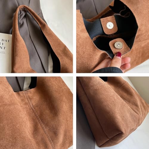 • Material: This women's tote bag is made from high-quality suede, which is a lightweight and comfortable fabric that doesn't burden the wearer; It features a hidden magnetic clasp for easy opening and closing, making it the perfect accessory for your autumn and winter wardrobe