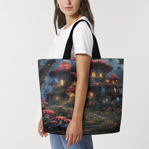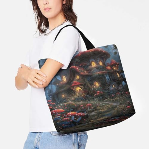 Women's Multi-Functional Shopping Bag,Mushrooms And Flowers Printing Messenger Bag Shoulder Bag for Travel, Work, Shopping & Parties with Inner Pocket, Grocery Bag Lightweight & Water-Resistant 7