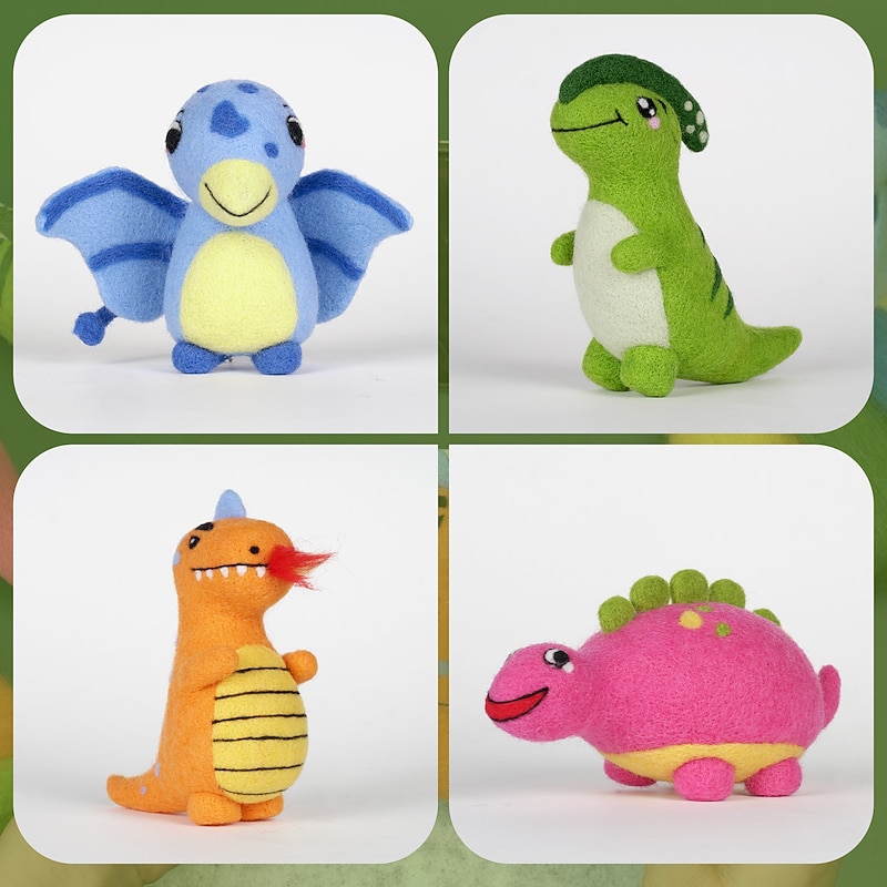 HOT ! 1 Set Wool Felt Poke Fun Felting Needles Needle Felting Supplies Kids Needle Felting Kit Toys for Kids Wool Felt Poke Music Diy Material Pack Cute Cartoon Dinosaur Baby 4-Pack Children's Toys