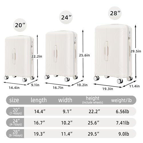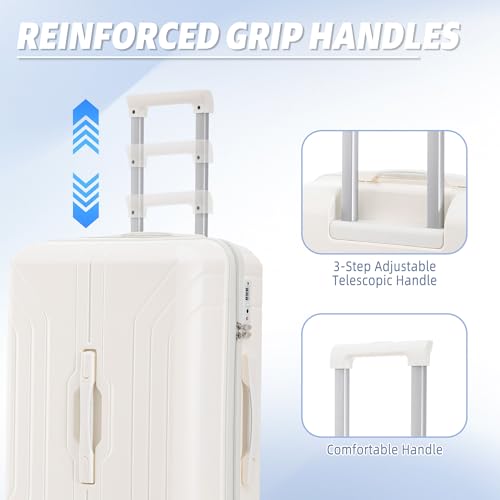 Merax 3 Luggage Sets, Durable Lightweight Hardshell Suitcase Spinner Wheels, White Horizontal Stripe, 20/24/28 Inch 4