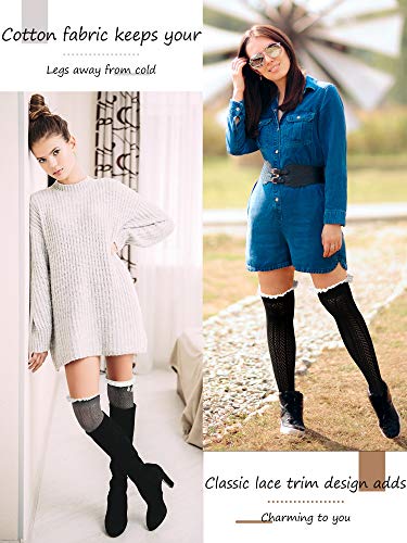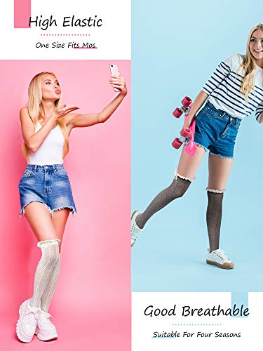 • Package contents: package includes 3 pairs of socks in 3 colors, including white, grey and black, 1 pair for each color; The over knee socks with lace trim measure approx. 22 inches from top band to toe, one size is suitable for most women or girls of different ages to wear
