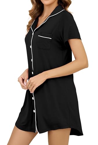 Nightgowns for Women Short Sleeve Button Down Nightshirt Soft Sleepshirt Boyfriend Pajama Dress 1