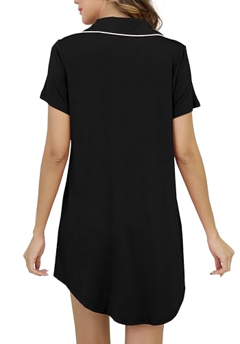 Nightgowns for Women Short Sleeve Button Down Nightshirt Soft Sleepshirt Boyfriend Pajama Dress 6