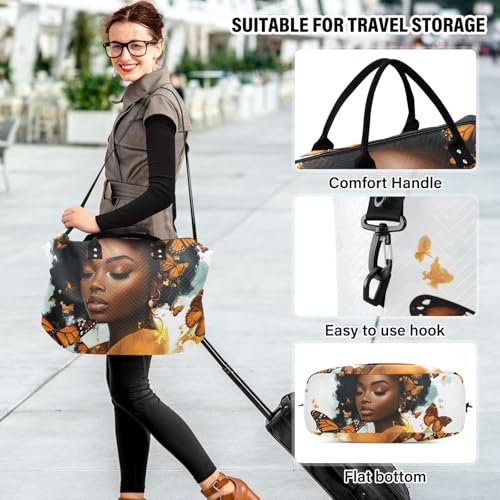 Afro Woman Butterflies Travel Duffel Bag Gym Bag Sports Tote Bag with Multiple Interior Pockets Shoulder Weekender Bag for Women Men with Toiletry Bag 20.5”x 7.9”x 13.8” 7
