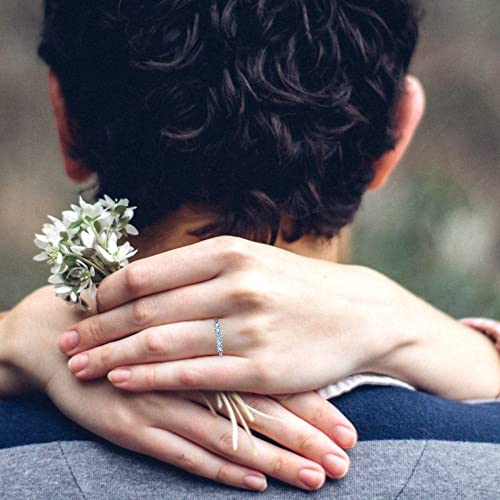 Clara Pucci 0.35 tcw Eternity Wedding Band for Women - 2.6mm Round Cut Aquamarine Birthstone Gold Ring - 14K White Gold Stacking Bridal Wedding Ring for her 6