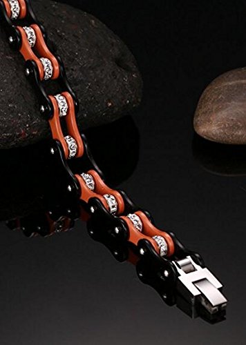 Unisex Stainless Steel Motorcycle Bike Biker Chain Link Bracelets with Rhinestones, 6 Colors (Black Orange) 5