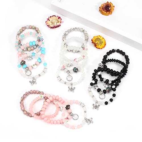 Twinfree Bohemian Bracelets for Women Stretch Multilayer Colorful Beads Bracelet with Charm Jewelry 4