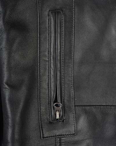 • Material: This mens black leather coat made from 100% real lambskin leather with a naturally smooth texture and soft polyester lining inside.
